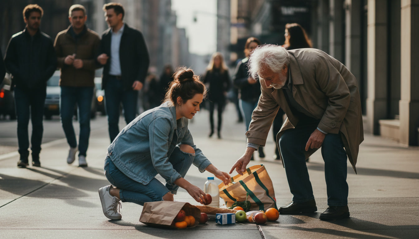 2. An older woman is blocking the aisle in a busy grocery store. She looks terrified. Most people rush around her and mutter under their breaths. You say to her, “Take your time. You’re fine.”